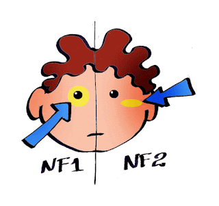 Também sabemos que os gliomas ópticos, muitas manchas café com leite e dificuldades de atenção praticamente não fazem parte da NF2, e sim da NF1. Assim, minha impressão é que você deve ter a NF1 e não a NF2, como mencionou.