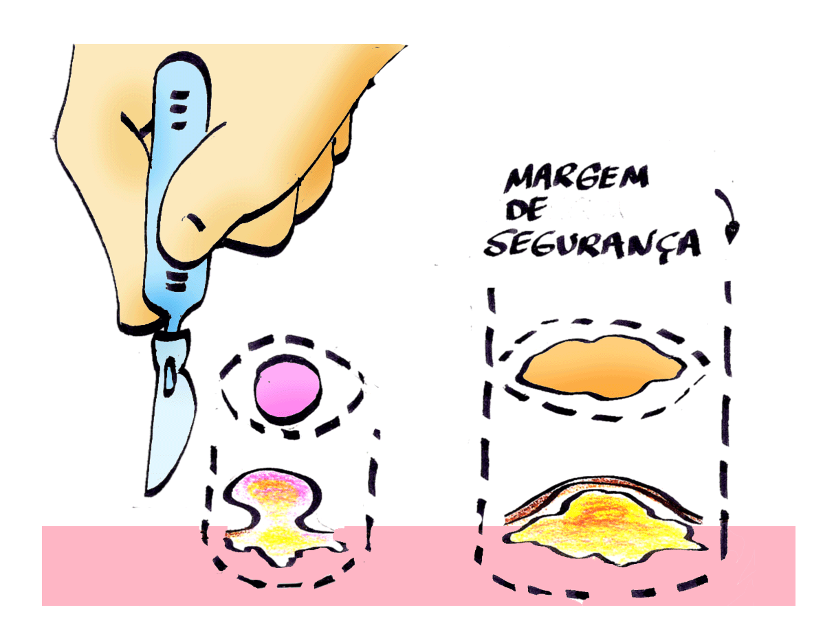 A margem de segurança nos cutâneos (ver figura) pode ser mínima porque estes neurofibromas são sempre benignos, reduzindo assim o tamanho da cicatriz. Considerando que a possibilidade de transformação maligna nos subcutâneos é pequena mas existe, especialmente naqueles de maior tamanho, a margem de segurança pode ser um pouco maior para garantir que seja retirado todo o neurofibroma.